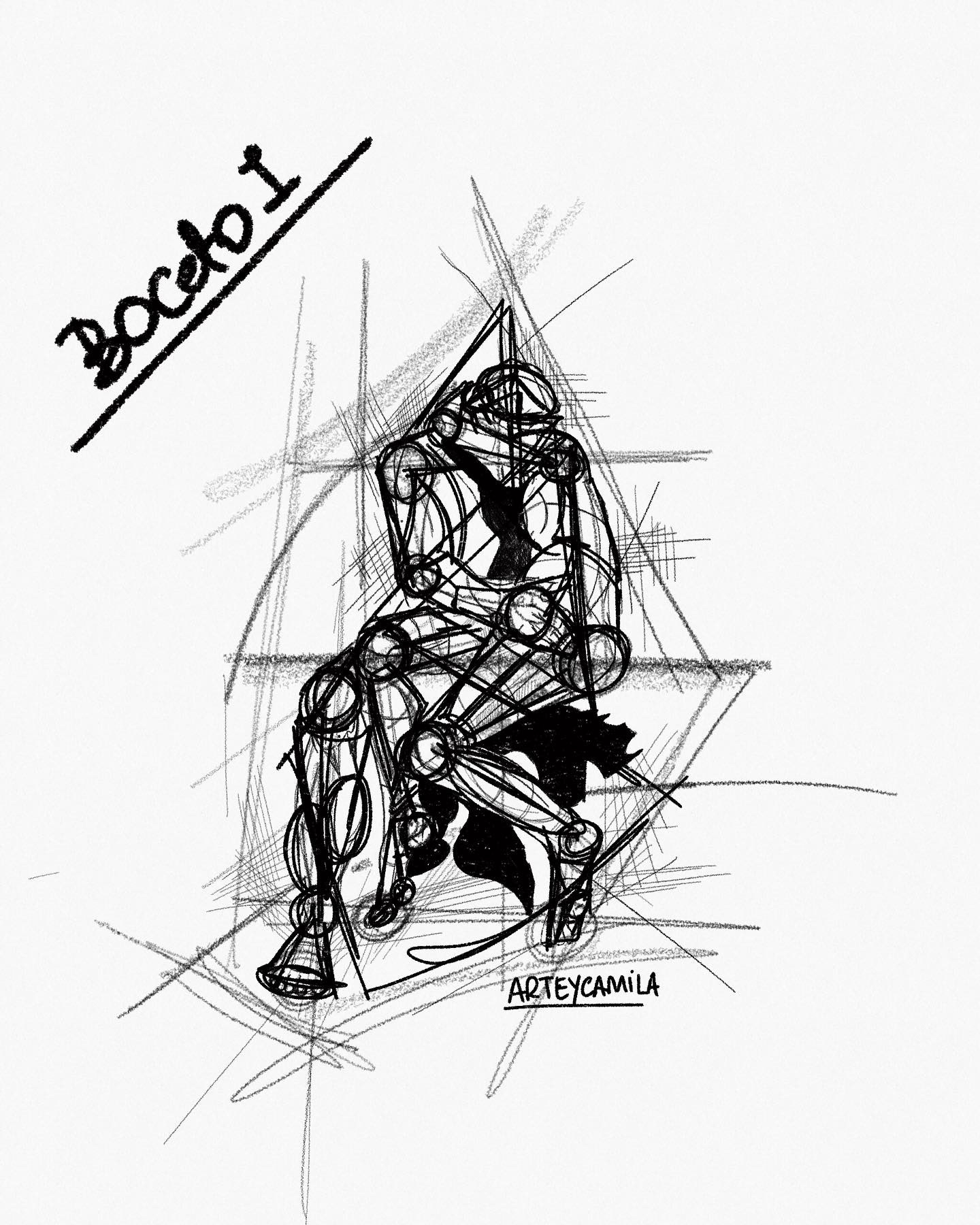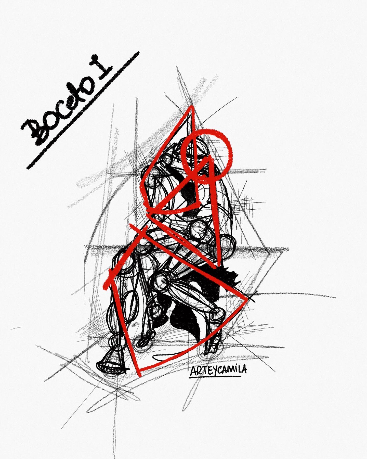 Inspirada por la obra "Composición VIII (La Vaca)" De Theo Van Doesburg, quise realizar mi propia deconstrucción de como la figura humana se puede reducir a figuras geométricas. Para ello, tome referencia de la escultura de "El Beso" de August Rodin y la fui deconstruyendo.